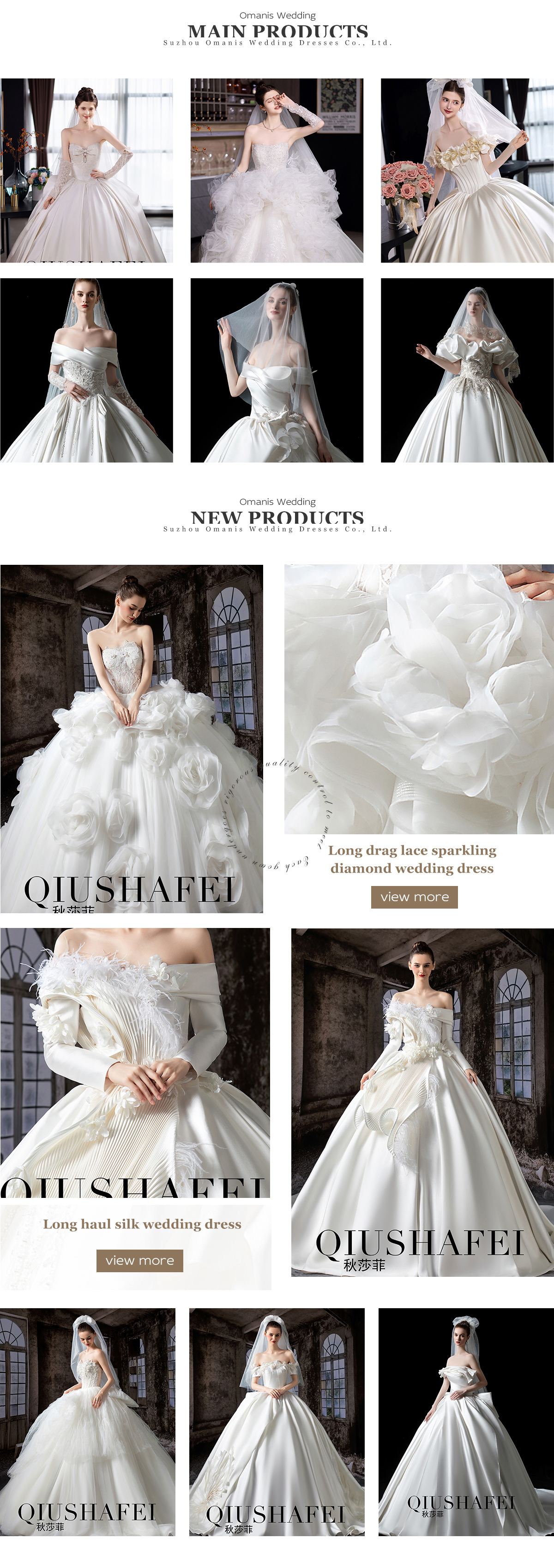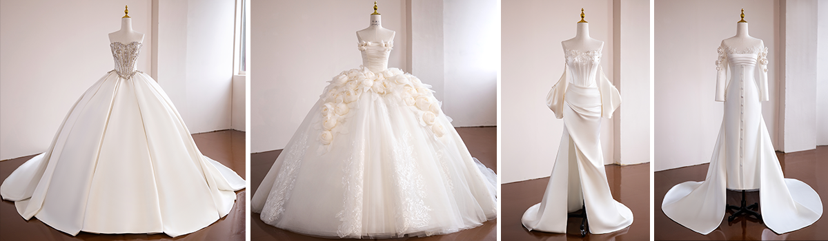 Productos principales:Vestido de novia de satén, encaje y cristal adornado vestido de novia, vestido de novia de sirena, vestido de boda de lujo ligero, vestido de novia de estilo modesto
